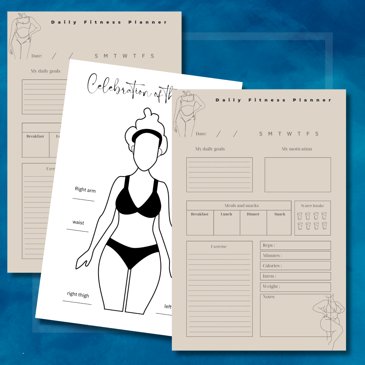 In addition, our planner includes a monthly body measurement comparison section. This feature enables you to track changes in your body measurements over time, providing a visual representation of your progress. Witness the positive transformations as you compare your measurements month after month, inspiring you to stay committed and focused on your weight loss journey.